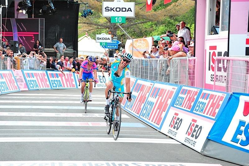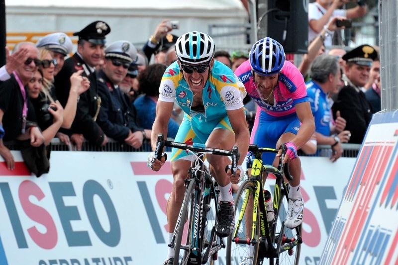 Stage winner Paolo Tiralongo holds on to beat Scarponi [ Image ©: www.gazzetta.it ]